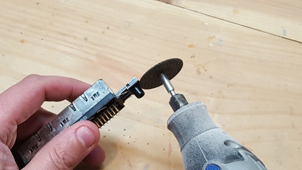 First we need to flush cut the two mounting pins off the cart slot.